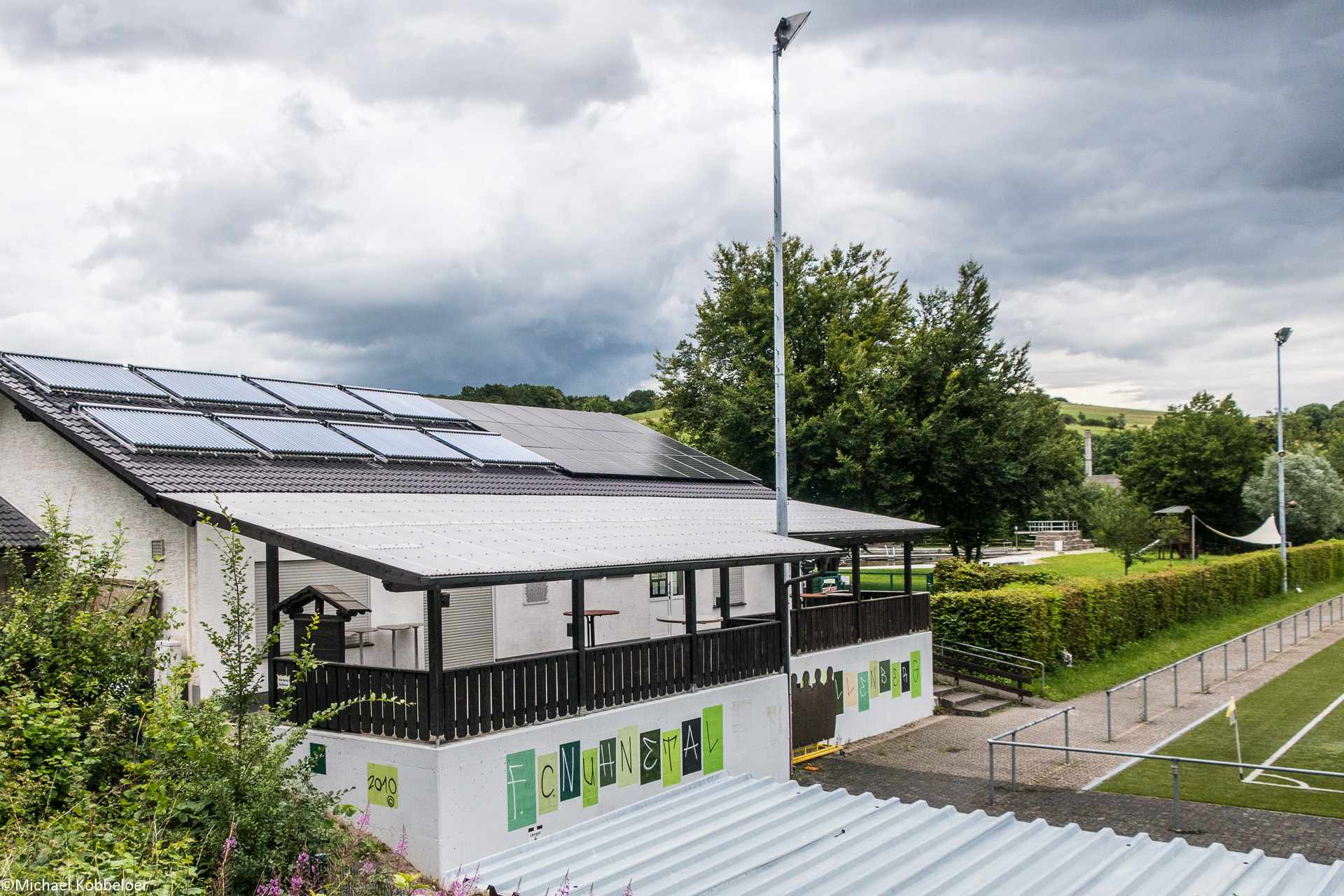 Der FC Nuhnetal hat seine Mittel in 3 Projekte untergliedert und das erste Projekt ist abgeschlossen. Mit der Installation einer Photovoltaik Anlage auf dem Dach des Sportheim in Hallenberg, wird durch die energetische Ertüchtigung das Klima geschützt und die laufenden Stromkosten des Vereins gesenkt.